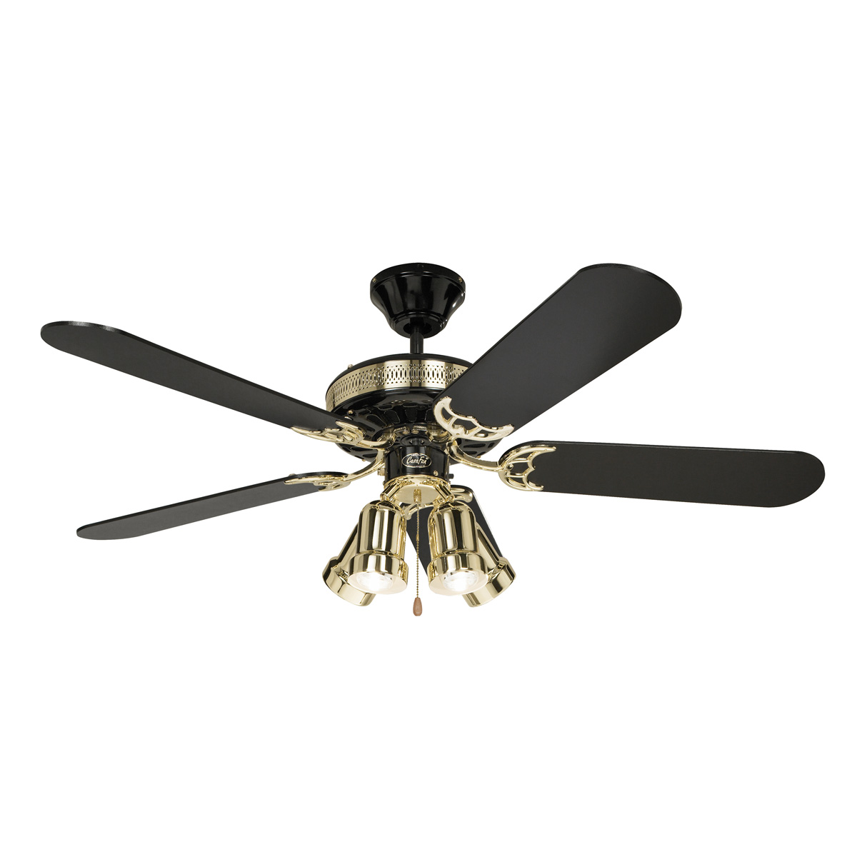 Lisätiedot: Musta viisilapainen valaisintuuletin neljällä spottivalolla. Tämä tyylikäs ja upea kattotuuletin viimeistelee sisustuksen. Erittäin hiljaisen käyntiäänensä ansiosta tuuletin sopii hyvin käytettäväksi esimerkiksi makuuhuoneessa tai olohuoneessa. Tämä kattotuuletin on myös erinomainen valonlähde ja toimii samalla myös valaisimena.