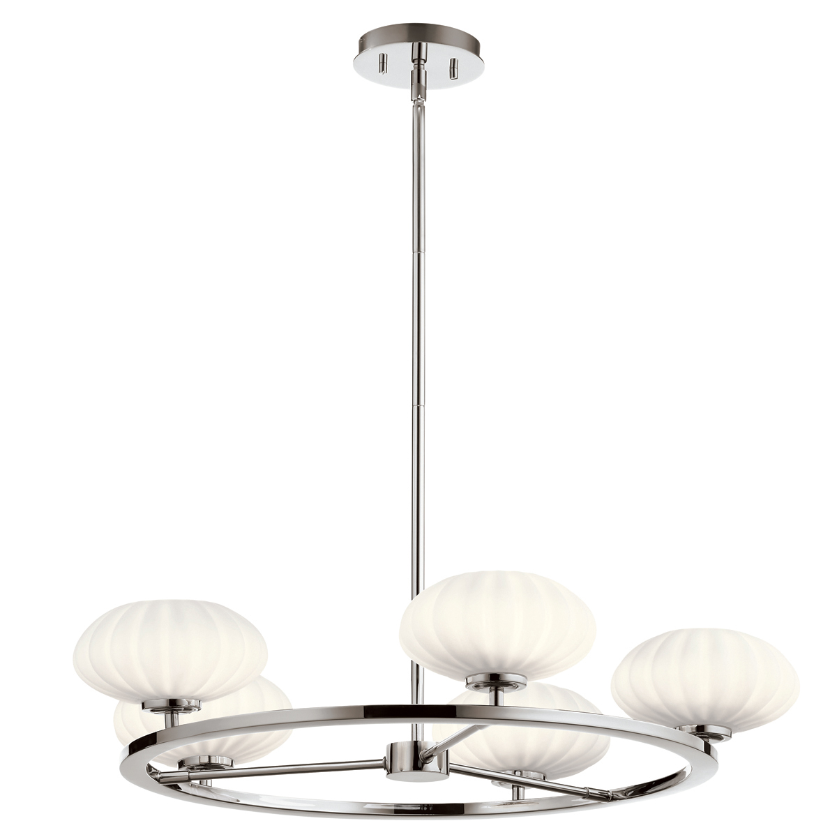 Nostalginen kattovalaisin Mid-Century modern tyyliin. Valaisimessa ovat tyylille ominaiset pyöreän muotoiset satiini etsatut opaalilasista valmistetut varjostimet. Tämä monipuolinen kattovalaisin on IP44 luokiteltu, joten se sopii myös käytettäväksi kylpyhuoneeseen. Valaisin on saatavilla sekä kullansävyisenä että kiillotetun kromin värissä.
