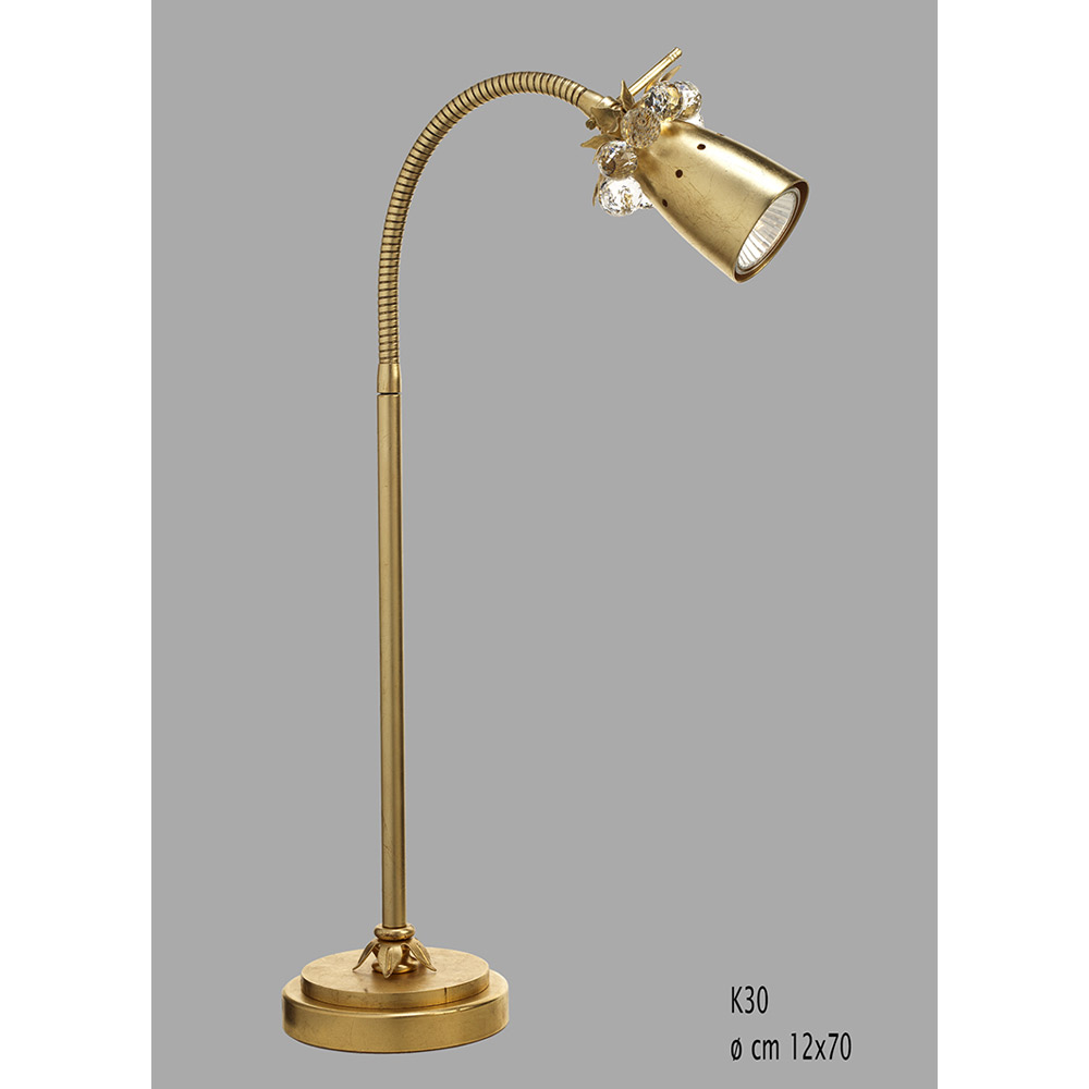 Kristalleilla koristeltu pöytävalaisin, jossa on taittuva varsi. Valaisin voidaan valmistaa myös muissa väreissä.
